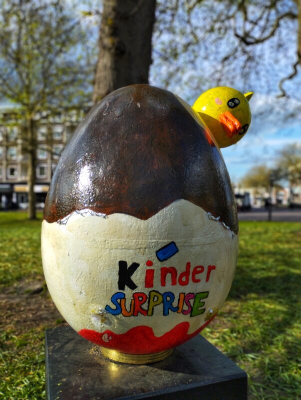 📍 Wat: 45 XXL-paaseieren beschilderd door scholieren + paasspeurtocht